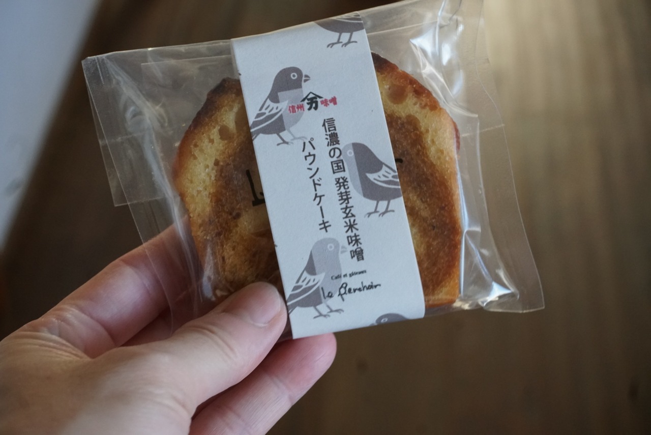 信州産の発芽玄米味噌を使った、独特の風味を持つパウンドケーキ.